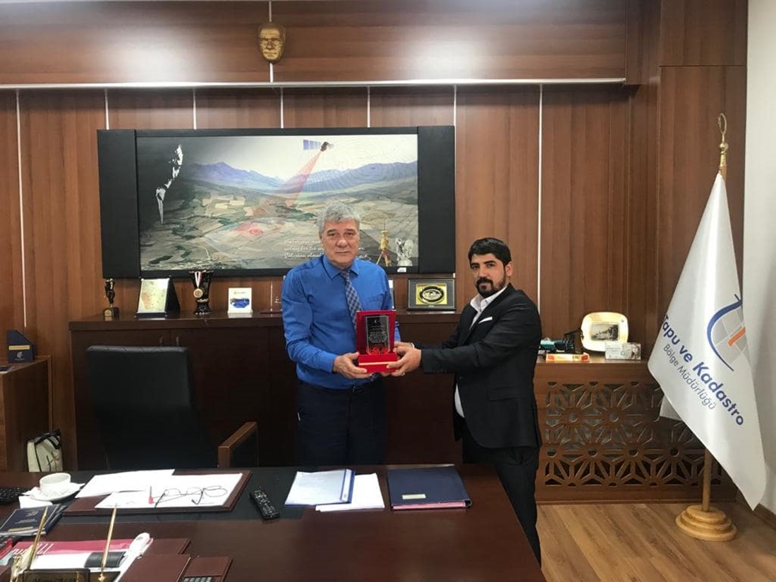 15 Temmuz Federasyonu Genel Başkan Yardımcısı Divan Kurulu Başkanı Genç Girişimci İş Adamı Aziz Akkuş, Diyarbakır Tapu Kadastro Bölge Müdürü Sayın Murat Çalık `ı makamında ziyaret ederek. 15 Temmuz Federasyonu olarak Plaket Takdim etti.