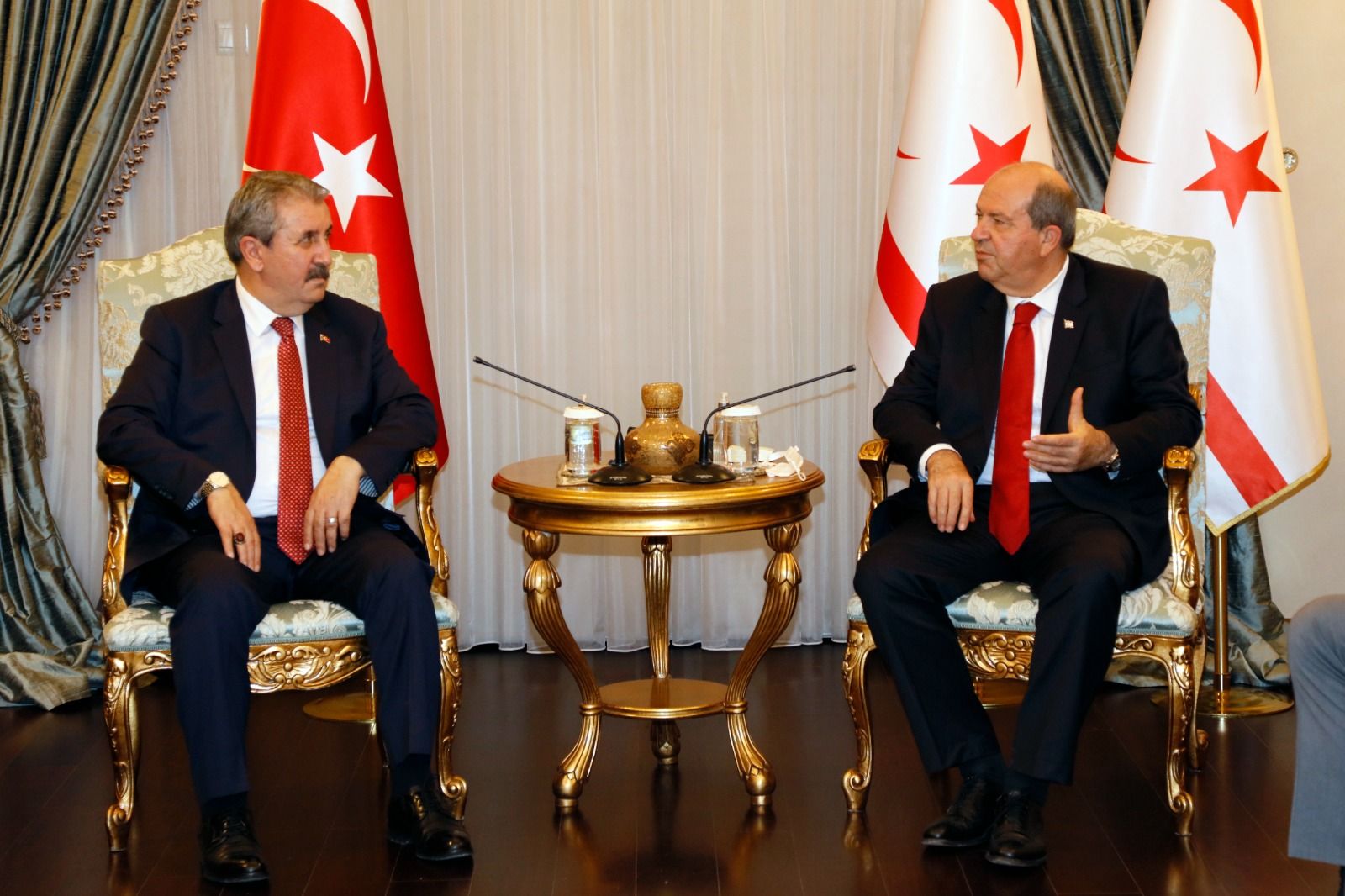 Büyük Birlik Partisi Genel Başkanı Mustafa Destici ise, 21 Aralık Şehitler Haftası dolayısıyla KKTC’de bulunduklarını belirterek Cumhurbaşkanı Ersin Tatar’n hem KKTC’de yaşayan halkın hem Türkiye Cumhuriyeti’nin hassasiyetleri gözeten güvenli ve müreffeh bir yaşam sağlamak adına yürüttüğü çalışmalarından dolayısıyla şükranlarını sundu ve Cumhurbaşkanı Tatar’a ve izlenilen siyasete destek belirtti.