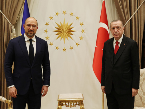 Cumhurbaşkanı Recep Tayyip Erdoğan, Ukrayna Başbakanı Denys Shmyhal’ı, Cumhurbaşkanlığı Külliyesinde kabul etti.