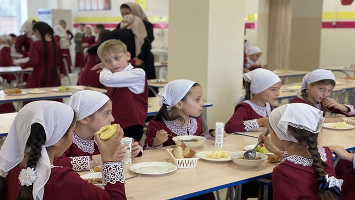 “Birleşik Rusya” Çeçenya’daki diğer 15 okuldaki ilkokul öğrencilerine yönelik sıcak yemeklerin kalitesini değerlendirdi