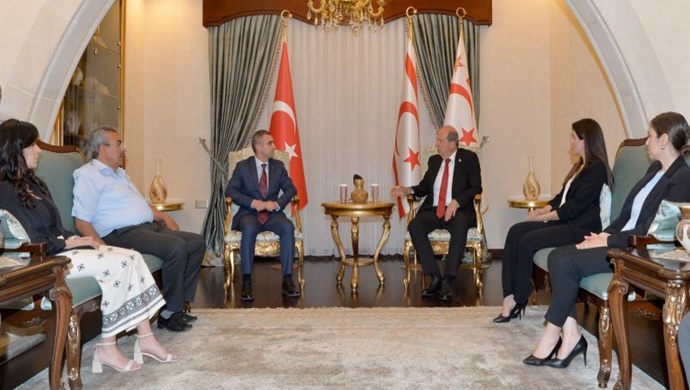Cumhurbaşkanı Ersin Tatar, Kuzey Kıbrıs Gayrimenkul Değerleme Uzmanları Birliği başkan ve beraberindeki heyeti kabul etti