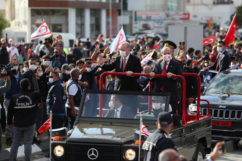 Cumhurbaşkanı Erdoğan, “Kıbrıs’ta, 1963’te silah zoruyla bozulan, 1974’te ise Yunan cuntasının düzenlediği darbeyle tamamen ortadan kalkan ortaklığı, Rumlarla birlikte yeniden tesis etmek mümkün değildir. Eskilerin dediği gibi, ‘dünün güneşiyle, bugünün çamaşırı kurutulmaz’. Bugün Kıbrıs’ta iki ayrı halk, iki ayrı demokratik düzen ve iki ayrı devlet vardır. Çözüm çabaları da bu gerçeklere dayanmalıdır” değerlendirmesinde bulundu.