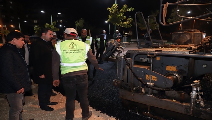 KARAKÖPRÜ’DE ASFALTLAMA ÇALIŞMALARINDA GECE MESAİSİ