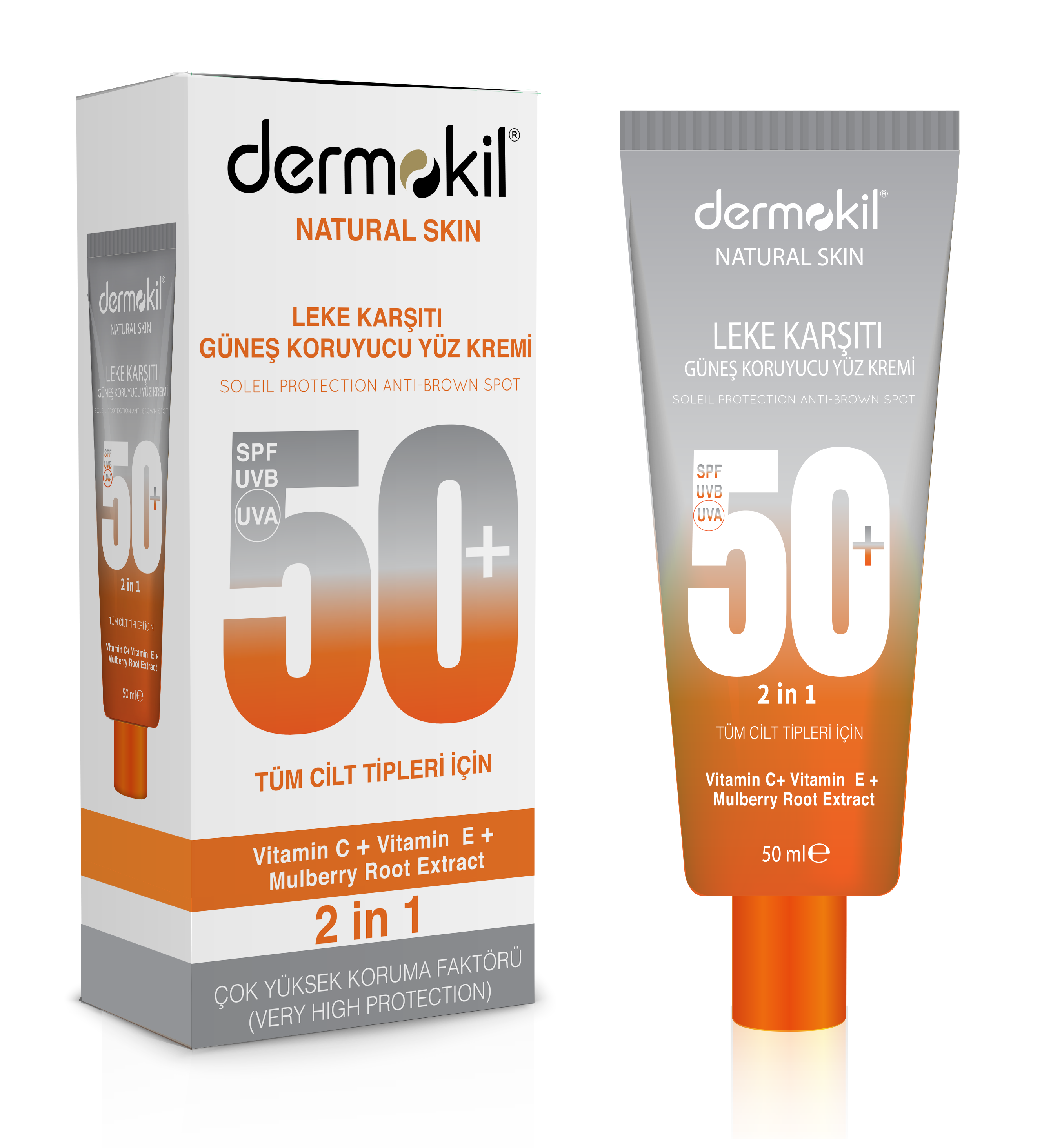 Lekelere karşı bariyer görevi gören Dermokil Leke Kremi, ciltte pigmentasyon yani melanin artışının kontrolünü sağlayarak başta güneş lekeleri olmak üzere hamilelikte oluşan lekeler, sivilce ve yaşa bağlı oluşan lekeler gibi görünümleri azaltıyor, zamanla lekelerin rengini açıyor. Vitamin c+ vitamin e+ mulberry ektrakt içeren Dermokil Leke Karşıtı Güneş Kremi, beyaz tortu ve yapışkan his bırakmıyor. Lekelere karşı en güçlü savaşçıya dönüşen Dermokil Leke Karşıtı Güneş Kremi 50 SPF, güneş hassasiyeti çok fazla olan cilt tipleri için de kullanım alternatifi sunuyor. Güneşe çıkmadan önce cilde bol ve eşit bir miktarda uygulandığında cilde doğal bir ışıltı kazandırıyor, aynalarla barışmanızı sağlıyor.