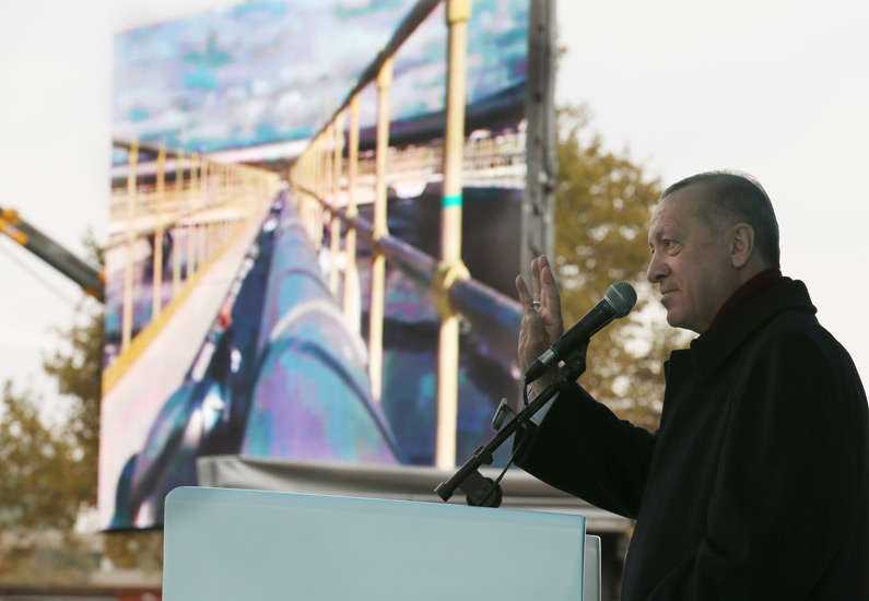 Cumhurbaşkanı Erdoğan, “Bir yanda kahraman ordumuzla sınırlarımızda ve sınırlarımızın dışında milletimize huzur verecek, dostlarımıza güven verecek, düşmanlarımıza korku salacak bir Türkiye var. Diğer yanda şehir hastaneleriyle, yollarıyla, köprüleriyle, okullarıyla, Karadeniz’de bulduğu doğal gaz başta olmak üzere, enerji projeleriyle, sanayisiyle, ihracatıyla güçlü bir alt yapı inşasına devam eden bir Türkiye var. Aynı şekilde dış politikadaki onurlu duruşuyla bölgesinde ve dünyada sözünü dinleten, itibarını yükselten, etkisini artıran bir Türkiye var” açıklamasında bulundu.